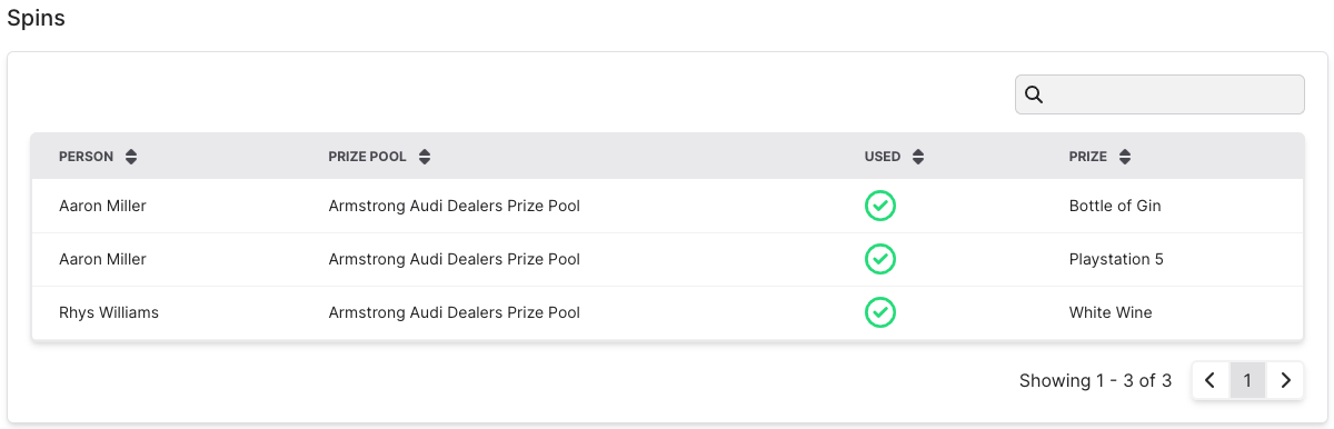 To confirm a sale, use the green tickbox on the right. If you have the Spin to Win add-on for your event, you can then give the Sales Exec 1 or more spins.