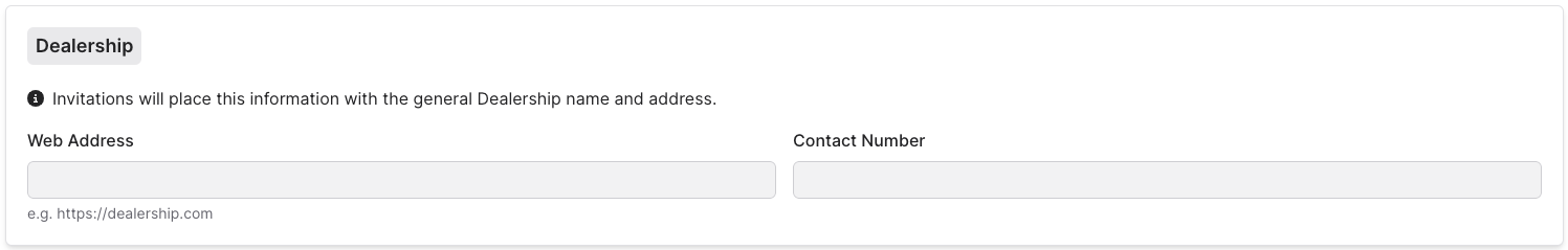 This will be the main web address and contact number of your dealership.